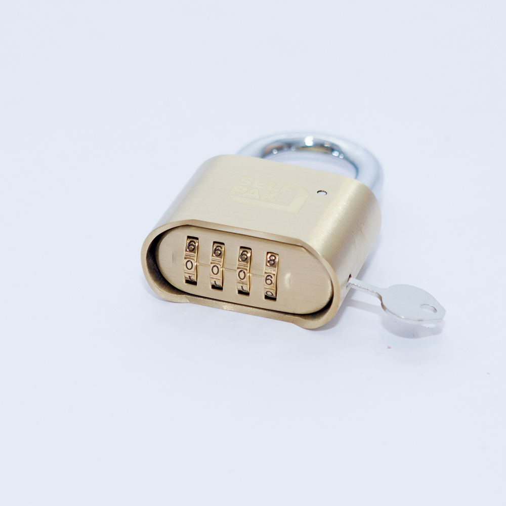 4 digit coded combination padlock with a solid brass body and hardened steel shackle. Combination reset key is included. Weather resistant so it is perfect for outside use.